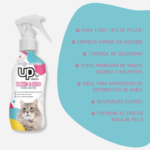 Previene la sequedad del cabello y aporta brillo. Limpia, hidrata y perfuma, neutralizando olores desagradables y eliminando bacterias. También ayuda a disminuir el efecto bolas de pelo.