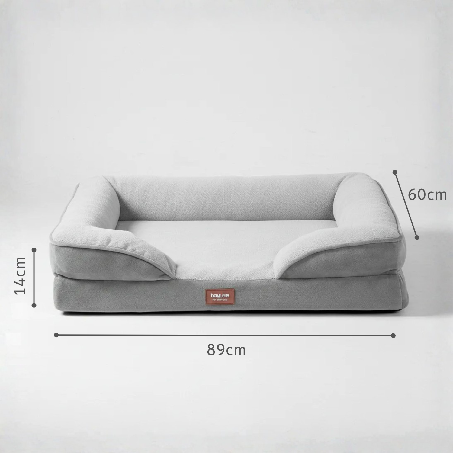 Cama L colchón ortopédico, con almohadas laterales. 89x60x14cm (Gris)
