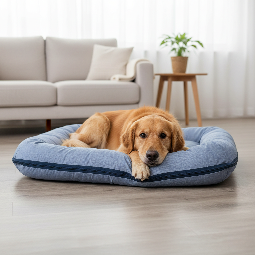 La cama incorpora un colchón ortopédico de gran calidad, diseñado para adaptarse al cuerpo de tu mascota y aliviar la presión en sus articulaciones, favoreciendo una postura saludable. Este soporte óptimo ayuda a prevenir molestias musculares y articulares, brindando un descanso profundo y reparador. Su resistencia y comodidad lo hacen perfecto tanto para usar en interiores como en exteriores, garantizando que tu compañero descanse siempre en un espacio acogedor y seguro.
