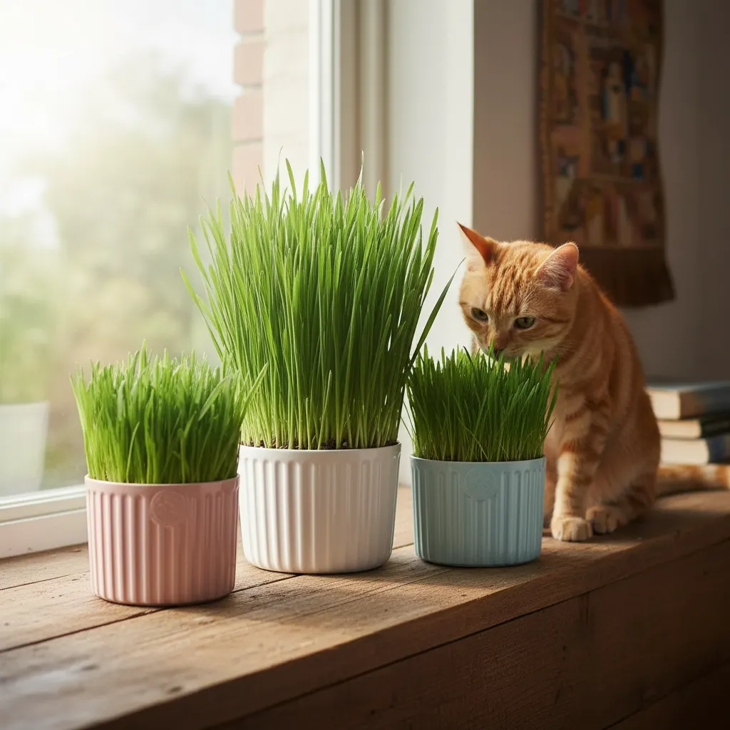 Kit preparador de pasto para gatos + semillas + tierra (Varios colores)