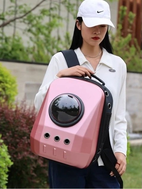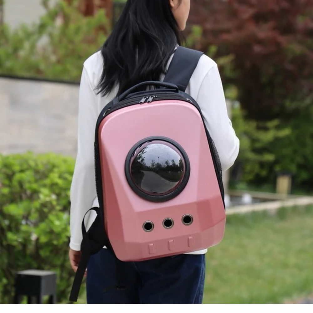 Mochila Space transportadora rígida para mascotas 42 x 32 x 29 cm. (Rosada)