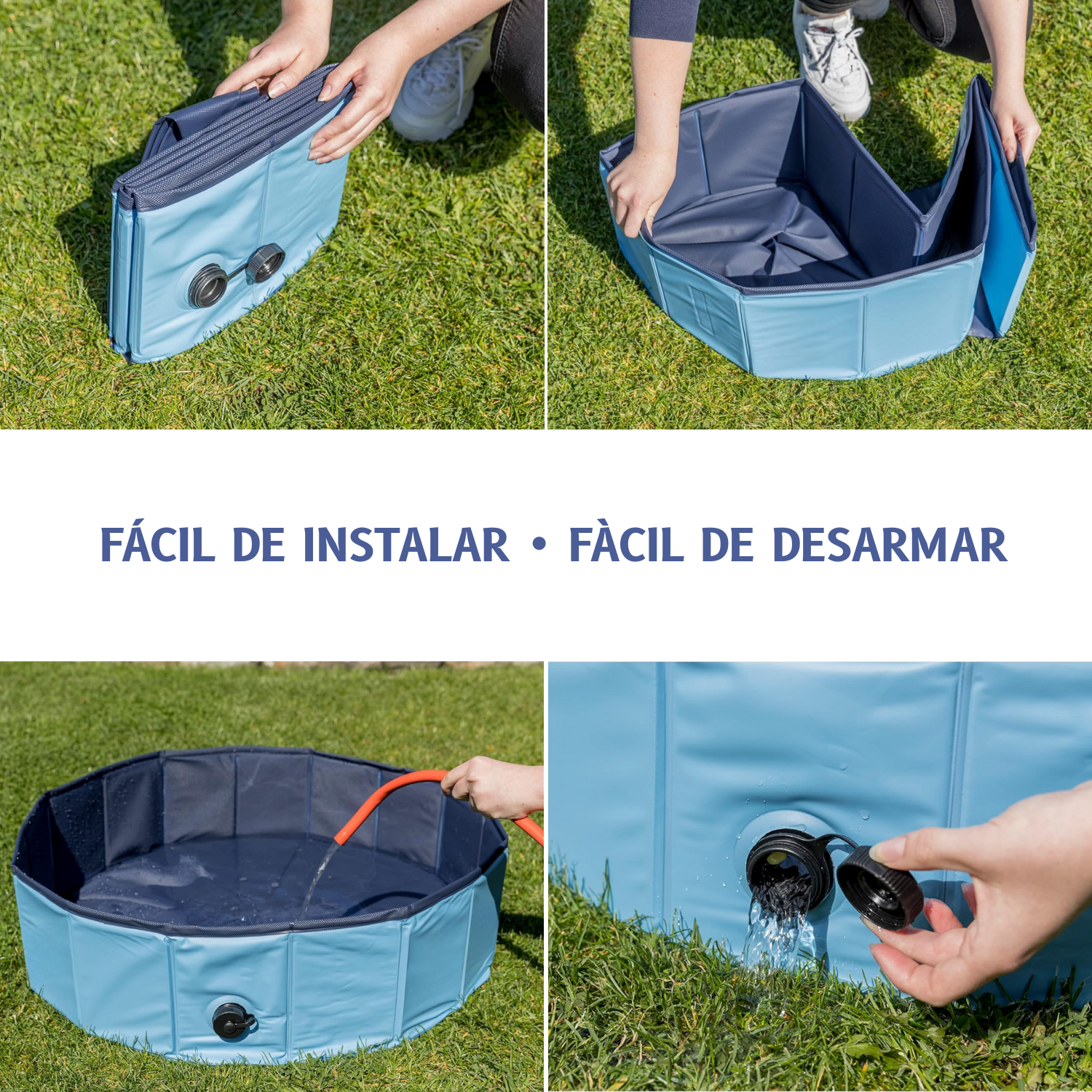 De fácil instalación, no necesita inflado, simplemente se despliega y queda lista para usar! Colocar la piscina en un fondo plano y liso, sin ningún objeto afilado debajo.