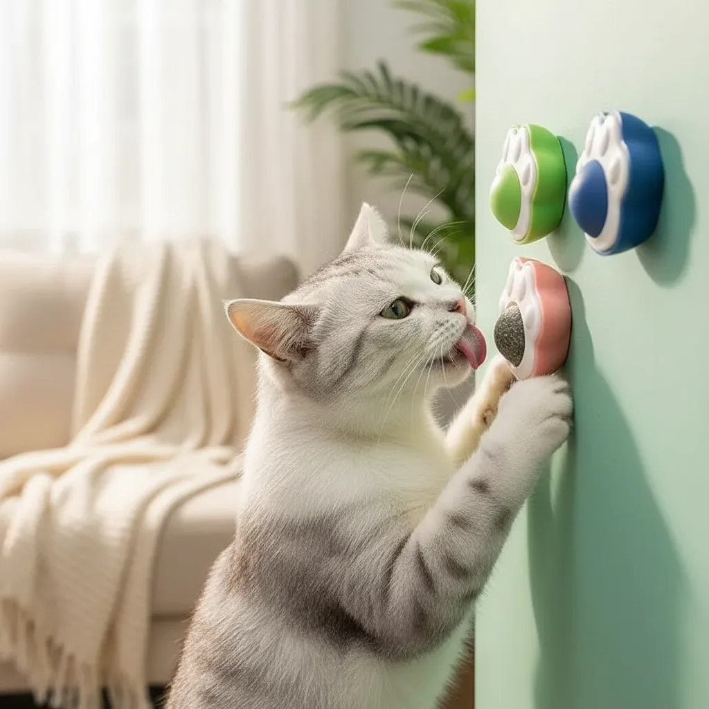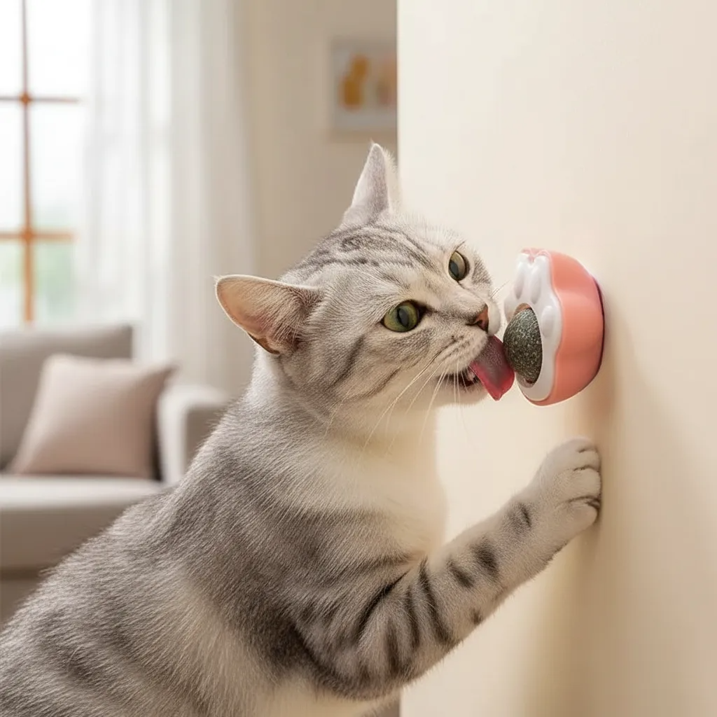 Incluye adhesivo para pegar a cualquier superficie lisa como paredes, ventanas, etc. No se desprende fácilmente y los gatos pueden lamerlo con confianza.